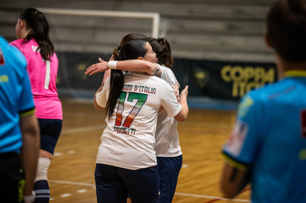 Tutto in 23 secondi. Il tempo che intercorre al Bitonto per far sua, di fatto, la prima semi della Final Four di Coppa Italia Under 19 Femminile. Al PalaRinaldi di Anzio la gara si sblocca subito. Schema da fallo laterale: Di Vincenzo serve Abbatessa, che controlla il pallone in area, elude l’intervento di Zandonà, si accentra e infila Alessia De Lucia sul palo corto. Il 2-0, 23” più tardi, è un golazo proprio di Alexandra Divincenzo: una sassata da distanza siderale sotto la traversa, impossibile da prendere. L’uno-due manda kappaò l’Audace Verona, squadra molto organizzata ma che in fase offensiva difetta di concretezza, a differenza delle Leonesse: Alexandra Di Vincenzo colpisce ancora in apertura di ripresa, un 3-0 che taglia definitivamente le gambe alle veronesi. Il 5vs4 con Ficeto portiere di movimento non porta a nessun ribaltone. Di Stefania Misino il 4-0.