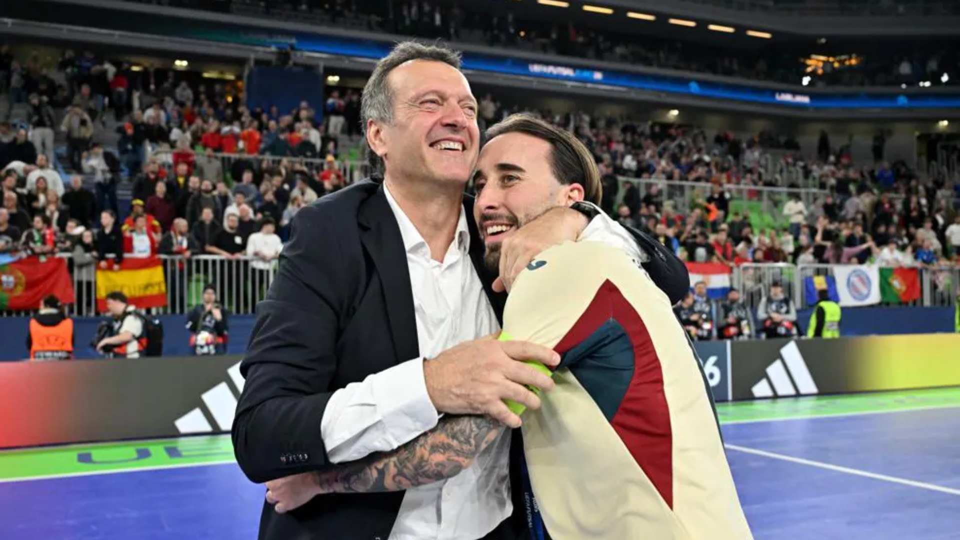 CHE FINALE! – All’Arena Stozice di Lubiana, la tredicesima finale europea (diretta da Manzione come secondo arbitro) si stappa subito: l’uno-due Antonio Perez-Raya nei primi 2’29” stordisce i portoghesi senza però mandarli ko. Afonso Jesus accorcia le distanze e Ruben Gois ricalibra il risultato: dopo neanche 7’ è già 2-2. Le Furie Rosse tornano in vantaggio a 40” dal duplice fischio con il solito Antonio Perez, preciso nel trasformare un tiro libero. Ma il Portogallo, pur rischiando tantissimo nella ripresa, trova la rete del 3-3 con Pauleta. A 4’40” dal termine, nuovo vantaggio delle Furie Rosse ancora con Antonio Perez: l’mvp di EURO 2026 raccoglie centralmente l’assist di Cecilio e, con un destro che finisce sotto la traversa, sigla il 4-3. Braz si gioca il 5vs4, ma la Spagna è granitica, regge il portiere di movimento lusitano e a cinque secondi dal termine certifica la sua superiorità: è di Adolfo il definitivo 5-3. Ci voleva un Mago per riportare la Spagna lassù, per l’ottava volta nella storia. Un Mago forgiatosi in Italia.