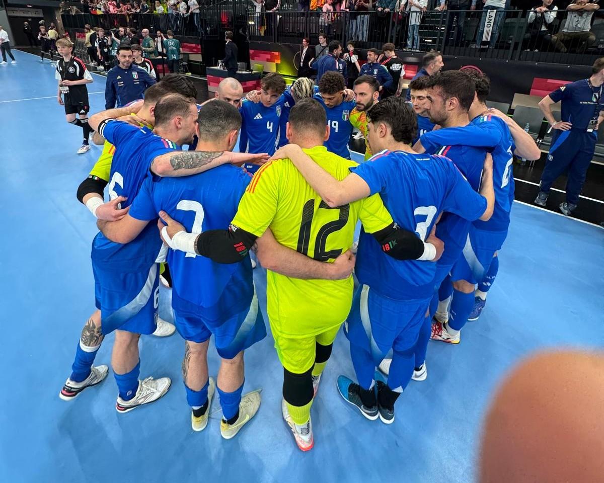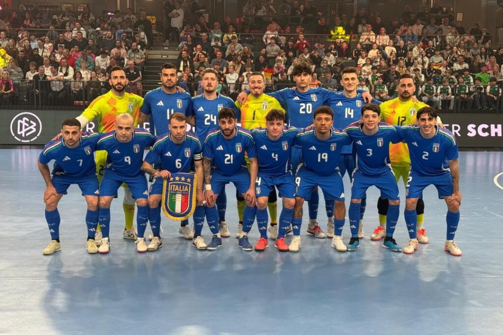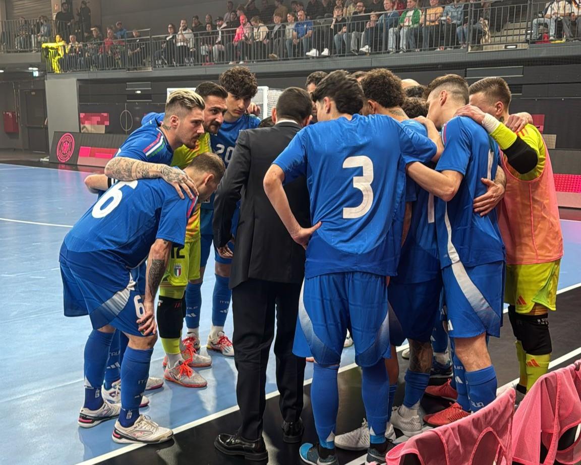 Un gol a parte e segnali positivi. L’Italia impatta 1-1 in casa della Germania nel primo scontro di sempre nel mondo del futsal fra Azzurri e tedeschi. Nel tutto esaurito della LKH Arena di Luneberg (2.000 spettatori presenti), la Nazionale, che si presentava alla partita con un roster rinnovato e ringiovanito, va sotto al 7’ del primo tempo con il gol di Harterich, pareggiando a inizio ripresa con la punizione di Podda, al suo primo gol in carriera con l’Italfutsal. Nel complesso Pulvirenti e compagni creano di più, mostrano personalità riuscendo anche a impattare l’importante fisicità tedesca, costruiscono tante occasioni, ma non vanno oltre il pareggio.