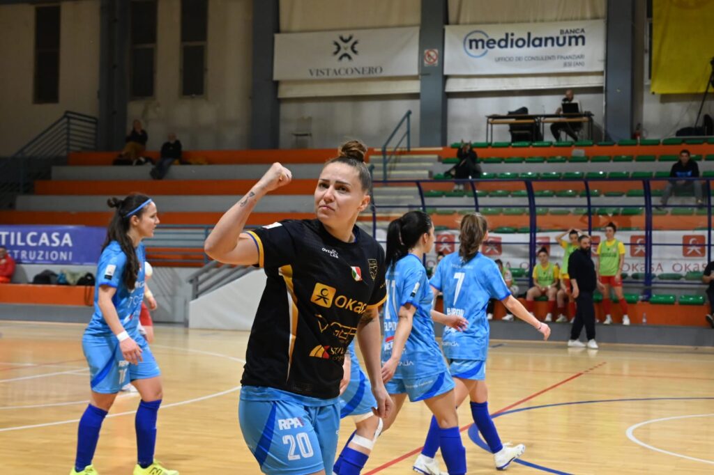 Va all’Okasa Falconara – di ripresa contro la Soccer Altamura – il posticipo della ventesima giornata, che sarà anche uno dei quarti in programma a Genzano: di Cintia Pereira l’unica rete del primo tempo, poi la rimonta delle Citizen col portiere di movimento, concretizzata negli ultimi 5′ di gioco. Pari di Tainã Santos, al rientro in campionato dopo un lungo stop, sorpasso di Elpidio e sigillo finale di Isa Pereira. 3-1 al PalaBadiali. Ora le Coppe Italia femminili con quattro trofei da assegnare in quattro giorni. Il grande futsal continua.
