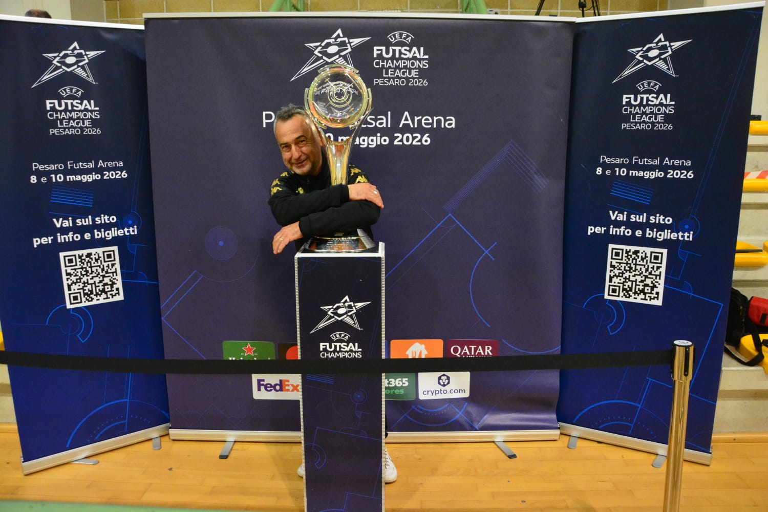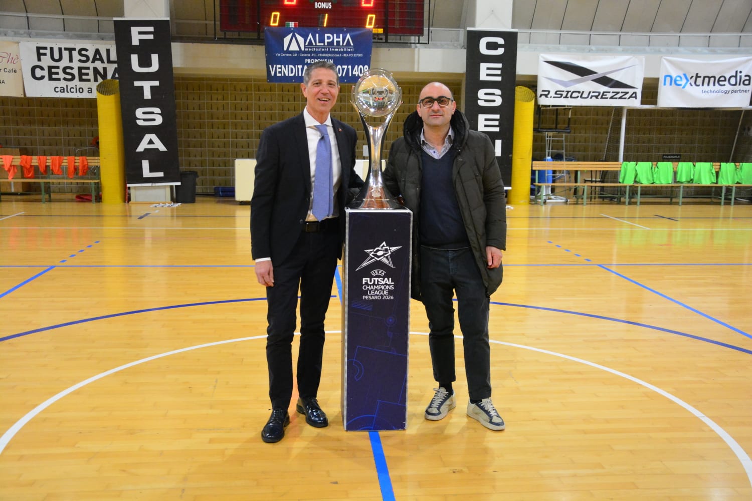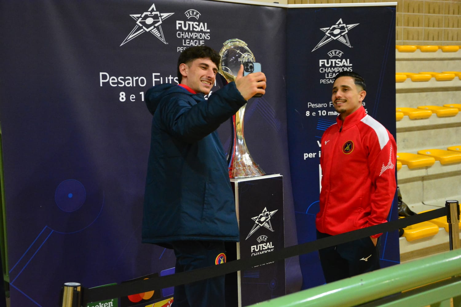 Le Marche strizzano l’occhio alla Champions League. È il minimo comun denominatore di tutte le tappe del Trohy Tour che ha terminato il suo viaggio di febbraio a Cesena, sfilando durante il match di Serie A2 Élite tra la squadra locale e il Montegrappa. Sorrisi e selfie, foto e il solito entusiasmo che sta accompagnando questo viaggio verso la Vitrifrigo Arena di Pesaro, sede della Final Four di UEFA Futsal Champions League, in programma dall’8 al 10 maggio.
